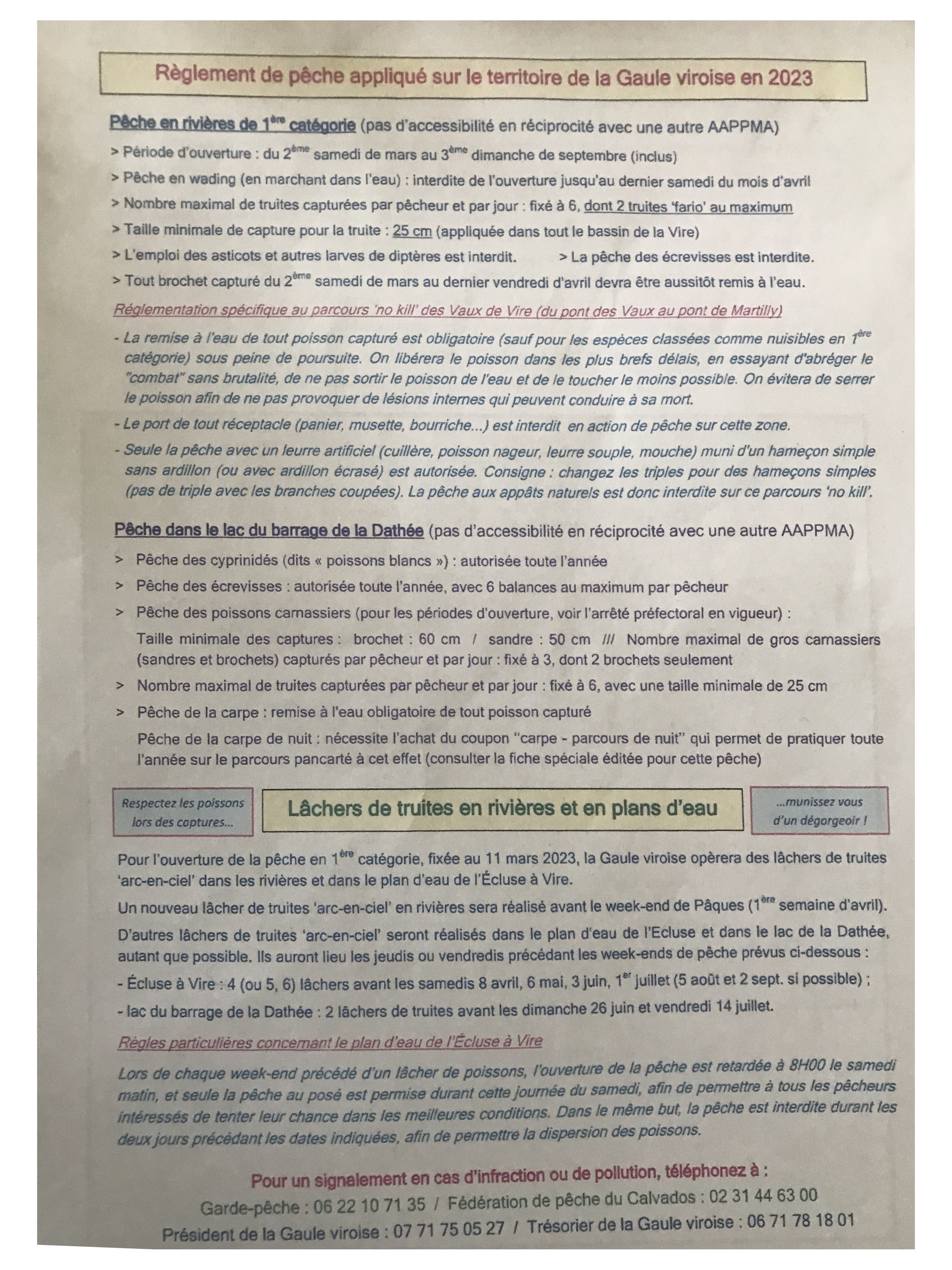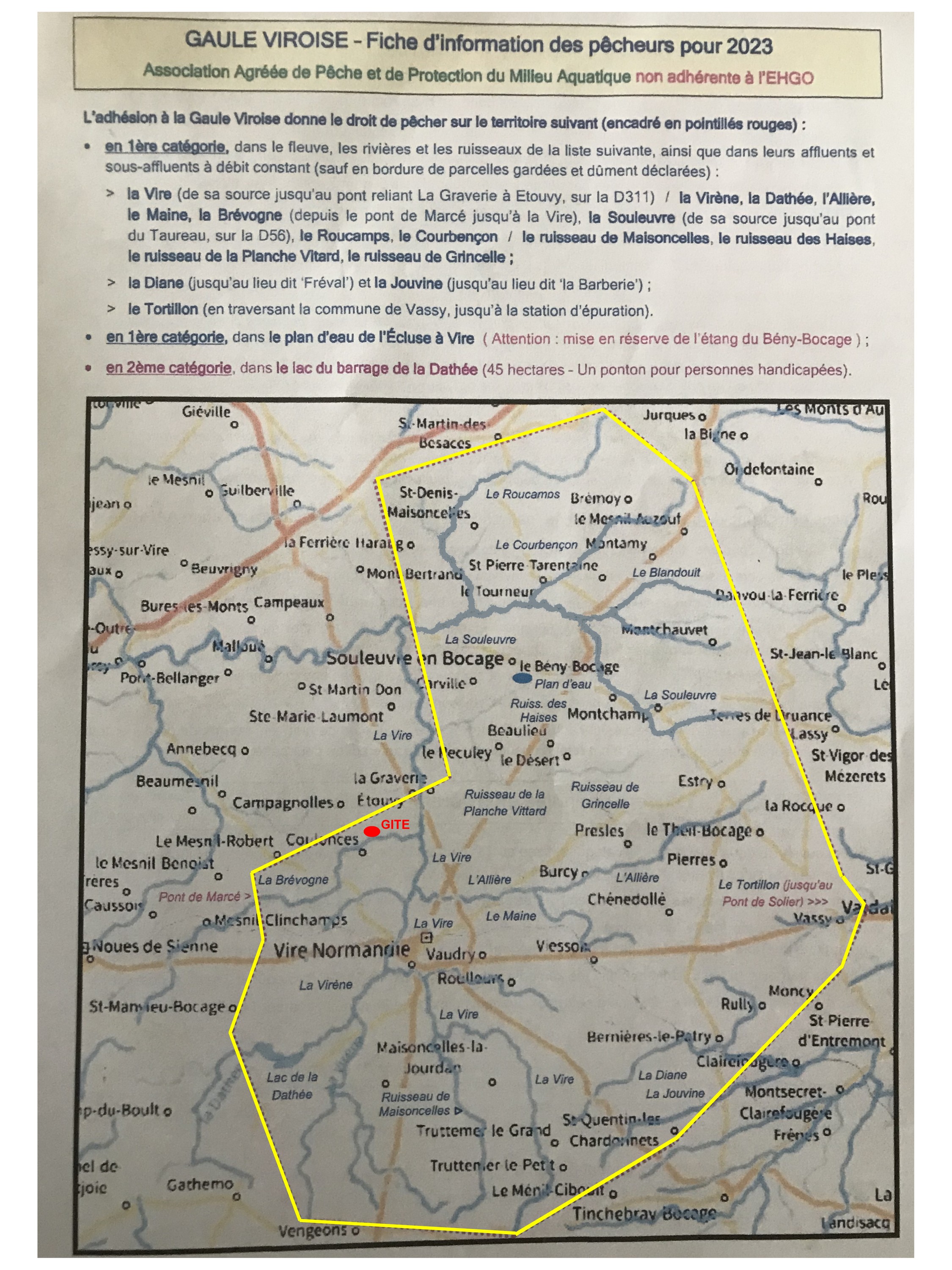 La pêche | Une carte de pêche journalière environ 15€ Consultez le site de la Gaule Viroise ci-dessous La Gaule Viroise | Cliquez ci-dessous pour accéder au réglement |